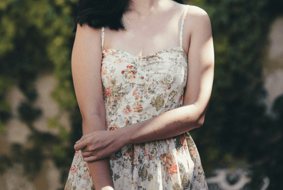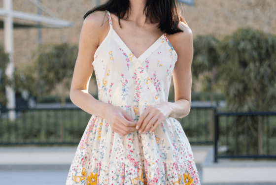 Floral, strap midi dress in a yellow fabric