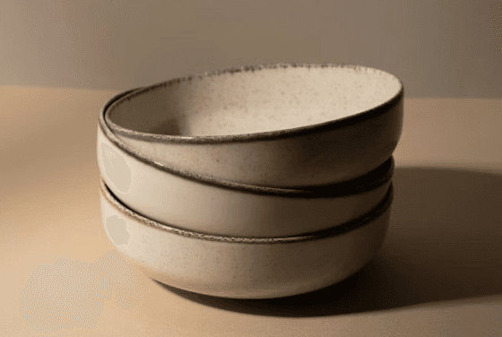 In stock neutral stoneware bowl that is dishwasher safe